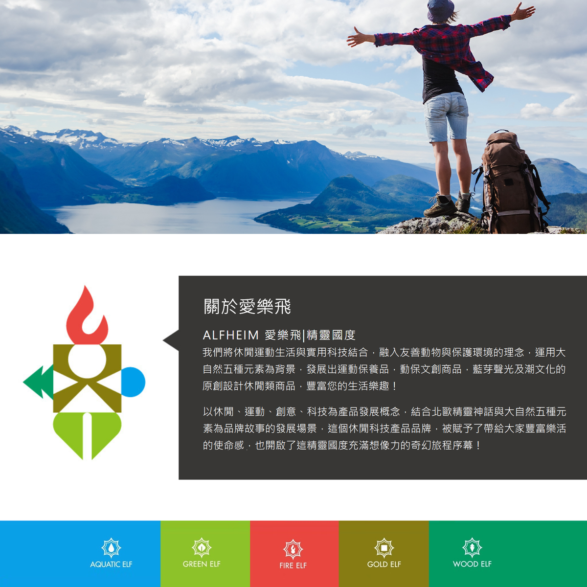 品牌代理與銷售休閒運動生活科技相關商品,BananaGO能量果膠,P.TEAM運動果膠等能量補給商品,堅心食動力運動益生菌,眠易復恢復膠囊,能易復運動恢復蛋白飲等運動恢復商品,運動保養霜,Your Secret 蜜秘跑褲,Supporting Team挺挺動物文創商品,Alfheim愛樂飛多功能藍芽喇叭聲光商品,將運動保養,能量補給等運動必需品,結合友善動物與自然環境納入設計選品思考,運用北歐精靈神話及大自然元素為故事場景,帶給大家豐富樂活的感受,開啟精靈國度奇幻旅程序幕!